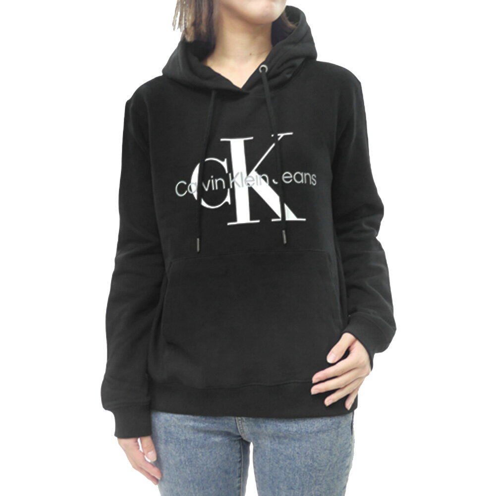 ■CALVIN KLEIN JEANS カルバンクラインジーンズ 裏起毛 プルオーバーパーカー J219141 長袖 フード ブランド ロゴ カジュアル スポーティ コットン 普段使い レディース ブラック 2025秋冬新作