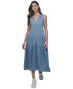 ■ダナキャランニューヨーク レディース トップス ワンピース ティアード ミディワンピース ミディ ノースリーブ DKNY Jeans Women's Sleeveless Tiered Midi Dress FJZ - CHAMBRAY