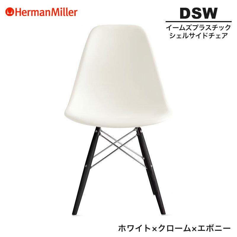 ■【セール25%OFF】 【正規品】 ハーマンミラー イームズ シェルサイドチェア DSW ホワイト クローム×エボニー ダヴェルベース 47ENZFE8 Herman Miller Eames Plastic Shell Chairs イームズチェア プラスチックチェア おしゃれ 人気