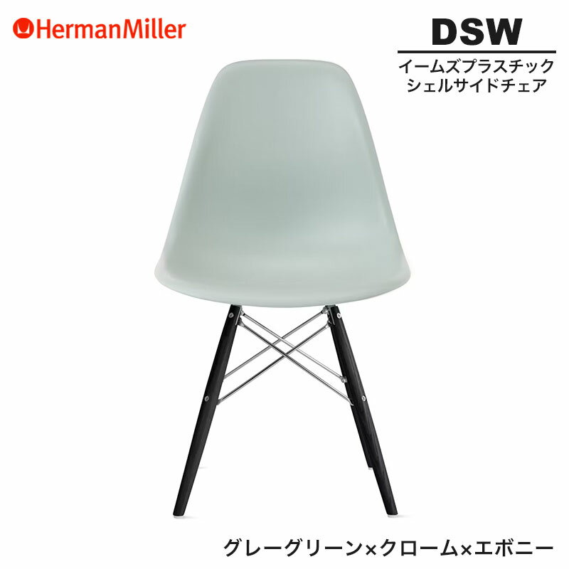 ■【セール25%OFF】 【正規品】 ハーマンミラー イームズ シェルサイドチェア DSW グレーグリーン クローム×エボニー ダヴェルベース 47ENRYGE8 Herman Miller Eames Plastic Shell Chairs イームズチェア プラスチックチェア おしゃれ 人気