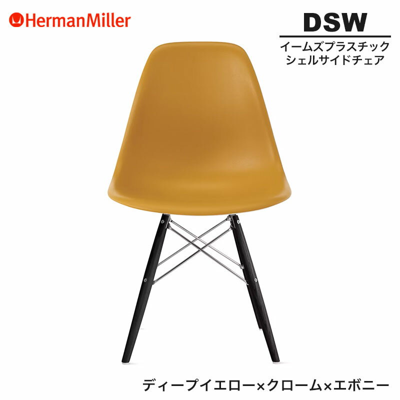 ■【セール25%OFF】 【正規品】 ハーマンミラー イームズ シェルサイドチェア DSW ディープイエロー クローム×エボニー ダヴェルベース 47ENDYLE8 Herman Miller Eames Plastic Shell Chairs イームズチェア プラスチックチェア おしゃれ 人気