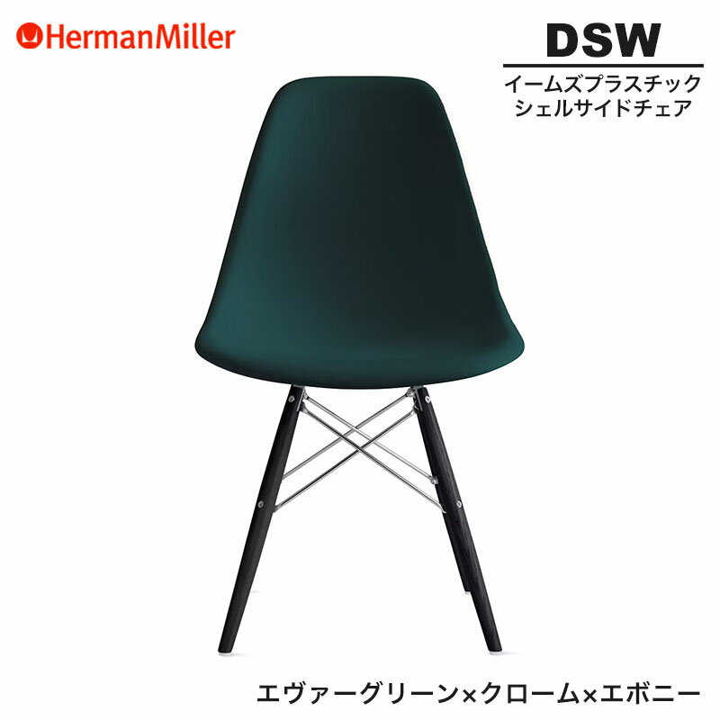 ■【セール25%OFF】 【正規品】 ハーマンミラー イームズ シェルサイドチェア DSW エヴァーグリーン クローム×エボニー ダヴェルベース 47ENEVGE8 Herman Miller Eames Plastic Shell Chairs イームズチェア プラスチックチェア おしゃれ 人気