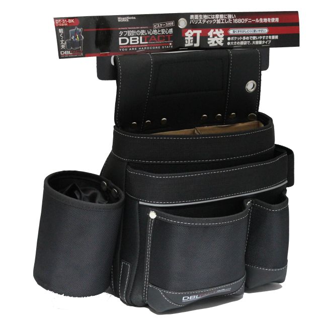 ■DBLTACT ビスケース付釘袋 DT−31−BK【腰袋 工具袋 ネイルバッグ ウエストバッグ 大工 仮枠】