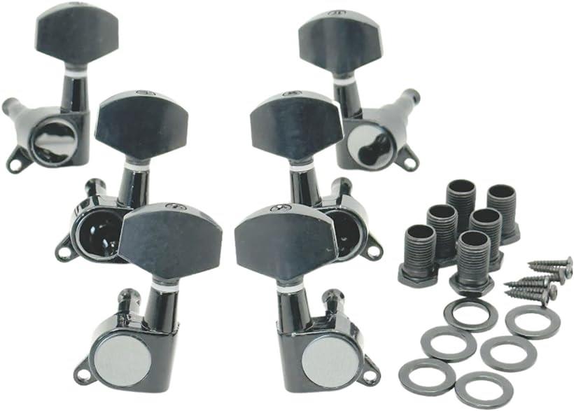 ■ギターペグ L3+R3 エレキギター アコースティックギター用 チューナー チューニングペグ ギターのツマミ 交換部品 6個入り ブラック (ブラック)