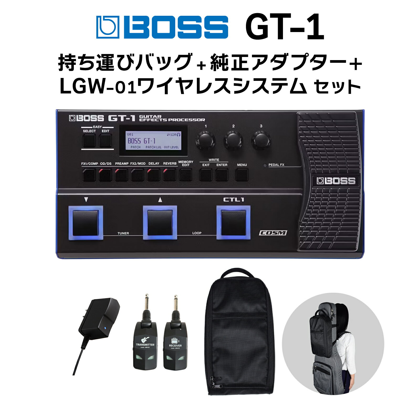 ■BOSS GT-1 + 持ち運びバッグ + 純正アダプター + LGW-01 ワイヤレスシステム セット マルチエフェクター エレキギター用 入門 初心者に最適 ボス