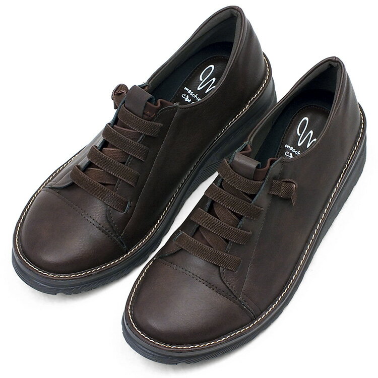 ■【楽天スーパーSALE】maschietta マスチェッタ レースアップシューズ ダークブラウン ゴム紐 厚底 ウェッジソール 3E 幅広設計 ローカット スニーカー フラット 外反母趾対策 痛くない 屈曲性 防水設計