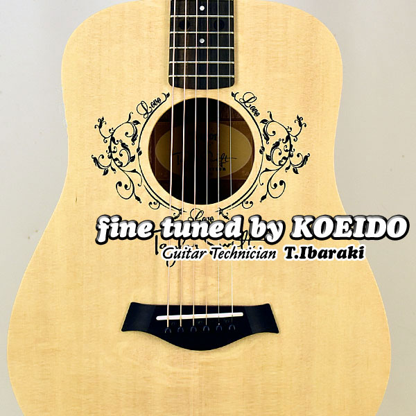 その安定した高品質さで人気のテイラーギ ターからカントリー・ポップのスーパース ター、テイラー・スウィフト・モデルが登 場!3/4サイズのドレッド・ノートボディの ベイビー・テイラーにテイラー・スウィ フトのサインが入り、サウンド・ホール周 りのつる草のモチーフと "Love" の文字が とても印象的です。トップはシトカ・スプ ルース、サイド&バックにはラミネート・ サペリを採用。ボディバックはアーチ構造 になっております。コンパクトで弾き易い モデルながら、生み出すサウンドは見た目 以上にパワフル!ミニギターらしからぬ、 ハリとクリアーさがあります。トラベルギ ターとしてはもちろん、気軽に弾いたり、 お子様や女性の方にもお勧めです。専用ギ グケースも付属します。送料無料! ★テイラーモデル・ストラップはこちら! ボディ:3/4サイズ・ドレッドノート、Sitka Spruce バック&サイド:Sapele Laminate ネック:Tropical Mahogany 指板: Ebony スケール:22 3/4 inch ●付属品:ギグケース、ピック2枚