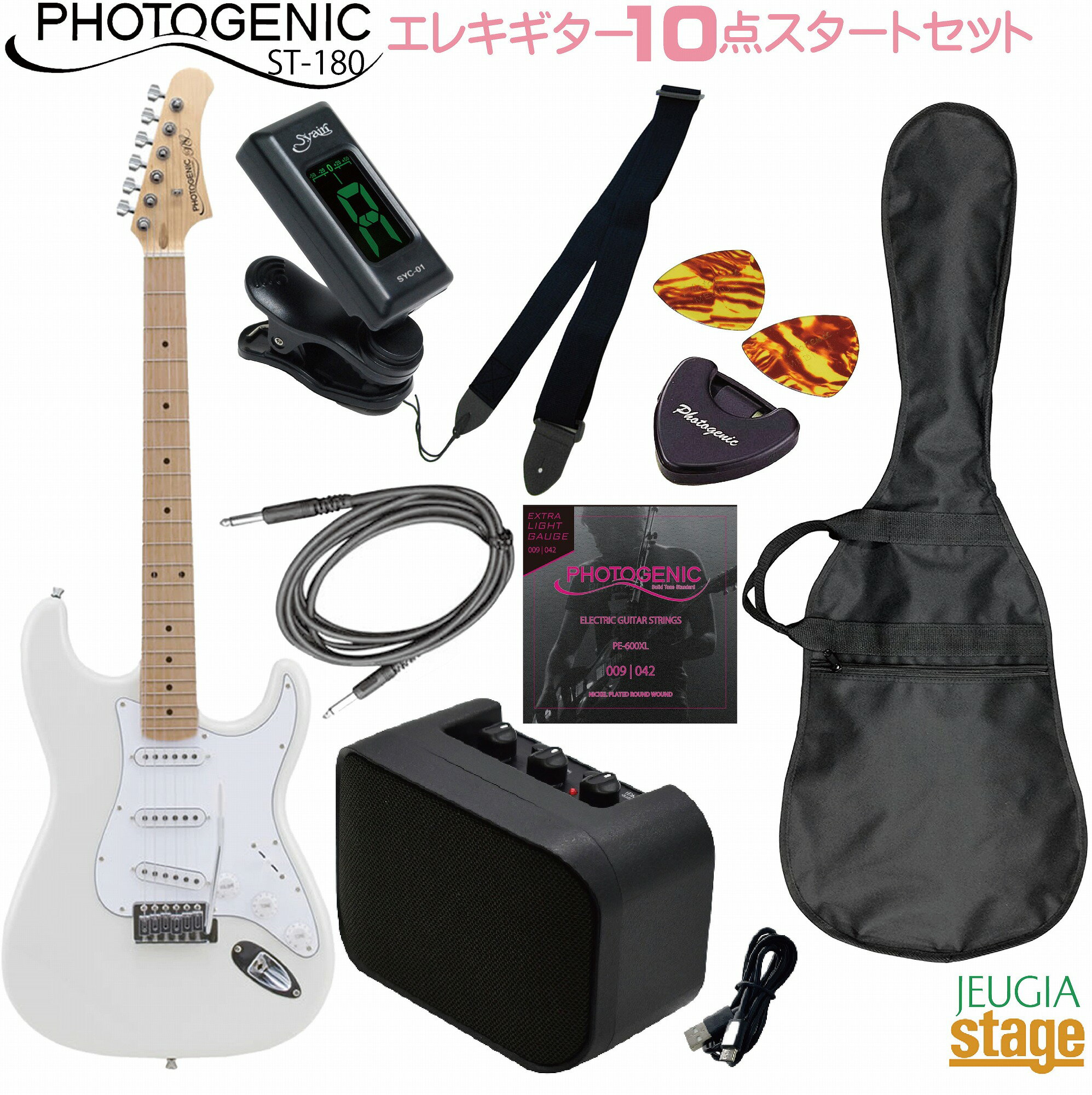 - 【初心者10点セット付き】Photogenic ST-180 WH/M White/Maple SET フォトジェニック エレキギター ストラトキャスター ホワイト/メイプル セット【エレキギターセット】【Stage-Rakuten Guitar SET】人気 入門・スタート・エントリー セット